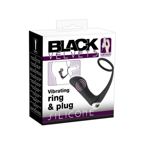 1 kép Black Velvet - akkus, szilikon anál vibrátor péniszgyűrűvel (fekete)