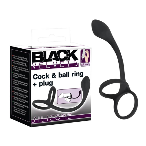 1 kép Black Velvet - vékony análdildó pénisz- és heregyűrűvel (fekete)