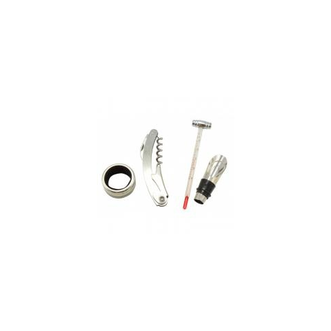 A boros szett tartalma 1 db dugóhúzó, 1 db cseppfogó , 1 db kitöltő, 1 db hőfokmérő (12619). Legyen stílusos, használja ezt a kiváló minőségű boros készletet. Remek választás borkóstolóra, partikra, házi bulikra vagy akár kerti sütögetésre.