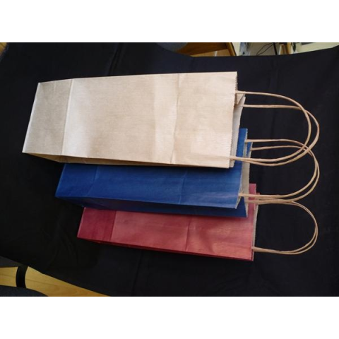 Bortartó papírtasak, 2-es, sodortfüles, natúr - CSW02 - Ajándék csomagolók, díszzacskók - Borok ajándékozásához használható papírtasak. Sodrottfüles, zsínorfüllel. Papír típusa: matt laminált Szín: natúr Kiszerelés: 1 db