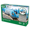 BRIO Elemes vonat Utasszállító elemes motorvonat! A BRIO Elemes vonat egy kék - szürke színű két kocsiból álló utasszállító elemes motorvonat vonatvezetővel A BRIO Elemes vonat vonatvezetőjét ültesd be a vezetőfülkébe, csukd le az ajtaját, majd nyomd