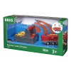 BRIO Távirányítású mozdony Távirányítású mozdony vonatpályádhoz! A BRIO Távirányítású mozdony egy piros színű háromtengelyes mozdony, lámpája világít, gombnyomásra hangjelzést ad, két előre és egy hátrameneti funkcióval A BRIO Távirányítású mozdony a