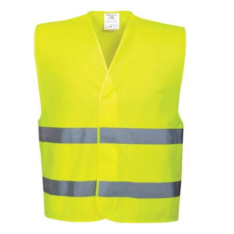 A Portwest C474 jól láthatósági mellény 100% poliészter anyagból készül, elől tépőzárral összezárható. Az alsó részén két fényvisszaverő szalag fut körbe.