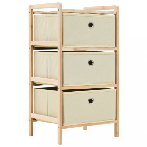Ez a tömör cédrusfa tárolóállvány a 3 darab, különálló, szövetből készült kosárral elég helyet biztosít majd a napi használati tárgyak számára. A fa tárolóegység könnyű, és könnyen elhelyezhető bárhova az otthonában. A tárolófiókok világos színű anyagból készültek, hogy elegáns megjelenést kölcsönözzenek a belső térnek. A tárolóállvány összeszerelése egyszerű.