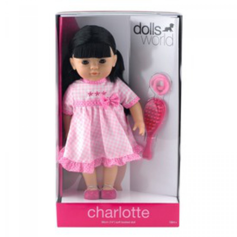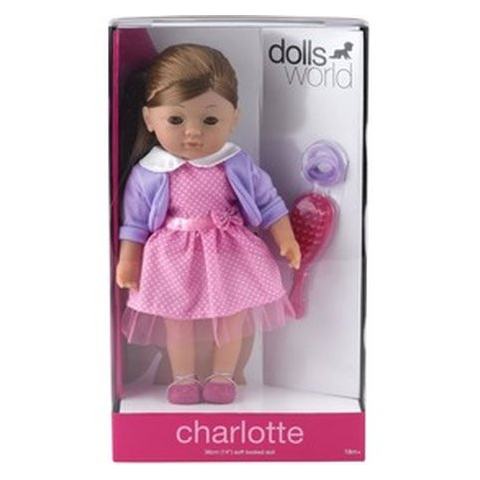 Sminkeld ki Charlotte-t a puha babát és készíts neki új frizurát! A Charlotte kifesthető és fésülhető puha baba szőke tincseit rengeteg módon meg tudod igazítani! Fogd össze egy vagy több copfba, egyenesítsd ki, vagy akár össze is fonhatod, mindegyik jól fog neki állni! A baba fehér pöttyös rózsaszín ruhát visel, lila kabáttal és nagy fehér gallérral. A készletben megtalálsz még három pár hajgumit, és egy hajkefét is, ami segít a hajszobrászkodásban. A b