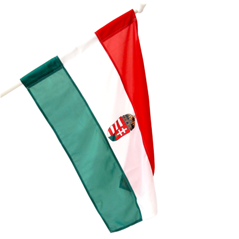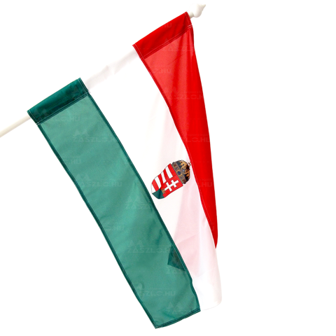 - 60×40cm-es, címeres, időjárásálló kültéri zászlóanyagból készült magyar zászló.