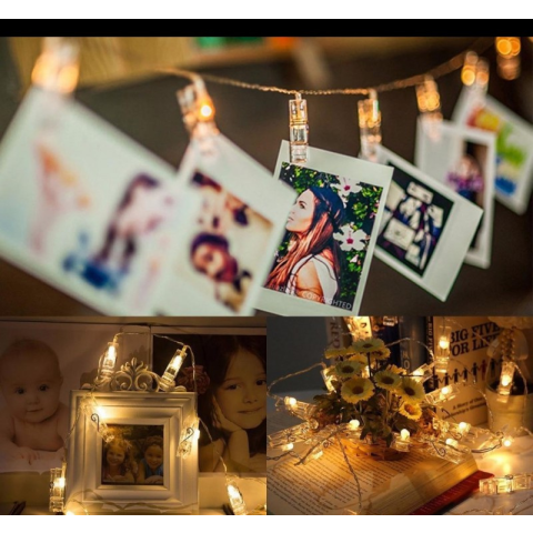 Csipeszes fényképtartó, csipeszes fényfüzér karácsonyfa izzósor 2 kép