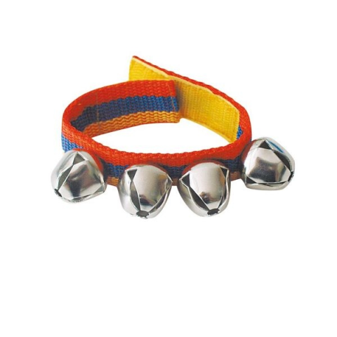 Csuklóra vagy bokára rögzíthető csörgő, tépőzáras pánttal, 4 db krómozott csörgő golyóval. Hossza: 23 cm
