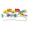 Cubika Halacskák fa gyöngyfűző Készíts egy szép füzért fa halacskákkal! A Cubika Halacskák fa gyöngyfűző egy ügyességi játék, ami nagyban fejleszti a szem - kéz koordinációt, és a finom kézmozdulatokat A játék lényege, hogy a zsinórra színes halacská
