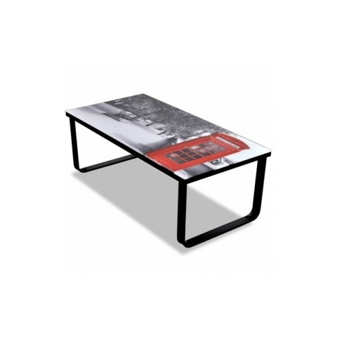 1 kép Dohányzóasztal telefonfülke mintás üveglappal