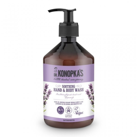 Dr Konopka nyugtató tusfürdő és kézmosó, 500 ml - Normál és érzékeny bőrre ajánljuk - Dr. Konopka 54. számú speciális gyógynövény-eszenciáját tartalmazza, amely nyugtatja, hidratálja, gyengéden tisztítja és táplálja a bőrt - A nyugtató levendulaolaj pedig