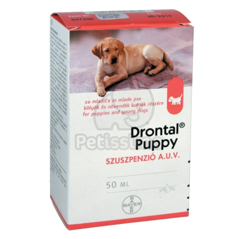 1, Az Állatgyógyászati gyógyszerkészítmény neve: - Drontal® Puppy szuszpenzió A.U.V. 2, Hatóanyagok és egyéb összetevők megnevezése: Hatóanyagok:- Pirantel-embonát: 14,4 mg/ml- Febantel: 15,0 mg/ml Segédanyagok:- Natrium-benzonát: 2,05 mg/ml- Natrium-propionát: 2,05 mg/ml- Kosnil vörös A (E124): 0,25 mg/ml 3, Javallatok: Fonalféreg ellenes szer kölyökkutyáknak és növendék kutyáknak.Hatékony az orsóférgekre (Toxocara canis, Toxascaris leonina), kampósfejű fé