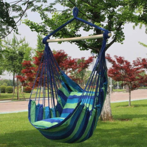 1 kép Egyszemélyes függőszék 85x130-as, ajándék párnákkal kék-zöld színben