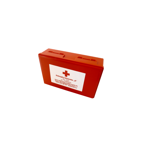 Szabványos B elsősegélynyújtó doboz személygépkocsikhoz. A termék külseje változhat a beszállítástól függően.