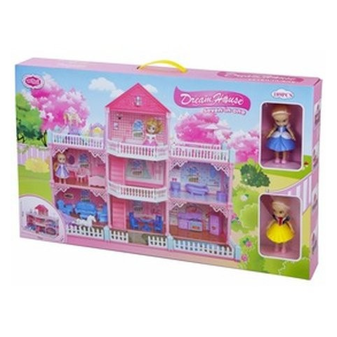 Emeletes babaház - 73 x 34 x 57 cm Helyezd el a babákat a három emeletes házikóban! Az Emeletes babaház egy rózsaszín, fehér erkéllyel felszerelt babaház, ahol külön találod a konyhát, a fürdőszobát, a nappalit és a hálószobát A babaház műanyagból ké