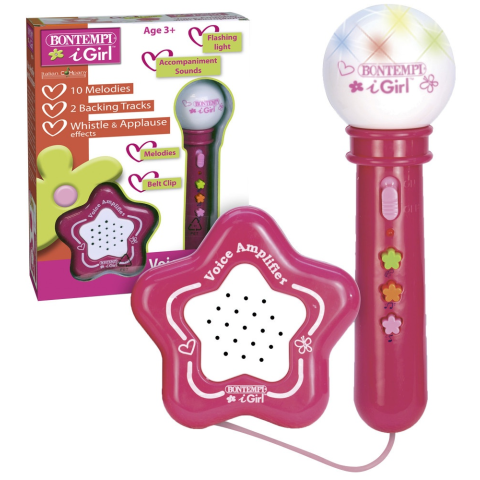 Erősítő és mikrofon Ejts ámulatba mindenkit énekhangoddal! A Bontempi Erősítő és mikrofon készlet segít, hogy a lehető legtöbbet tudd kihozni Önmagadból Az erősítővel ellátott mikrofon különleges funkciókkal rendelkezik: 2 háttér hangsávnak köszönhet