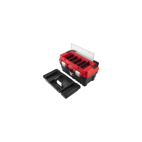 A Extol Premium Szerszámosláda, műanyag (8856080) 462 mm széles, 256 mm magas és 242 mm hosszú. Erős műanyagból készült, alumínium nyéllel fogantyúval ellátott a biztos fogás érdekében. Fémcsatok segítségével rögzíthető a fedél, valamint le is lakatolható. A rendező tálca praktikussá teszi, így minden szerszám kéznél lehet. A fedél részben apró fakkokkal ellátott, amelyben tárolhatja a csavarokat.
