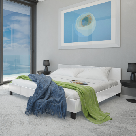 2 kép Fehér műbőr ágy matraccal 140 x 200 cm