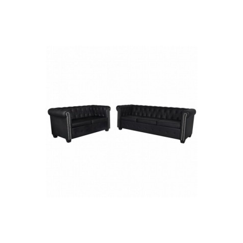Teljes Fekete 2 és 3 személyes Chesterfield műbőr kanapészett termékleírás
