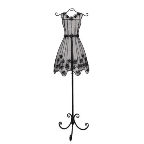 Fekete fém próbababa fogas, szobainas virágos ruhás, 43x34x149cm bútor termékleírás