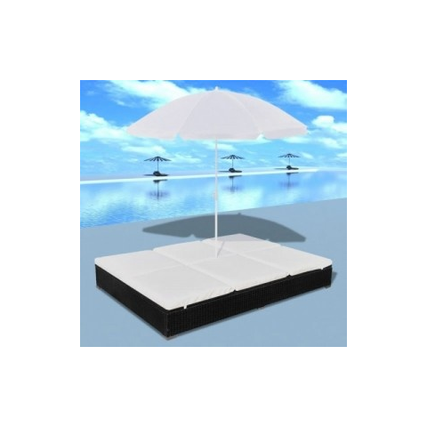 Fekete polyrattan napozóágy napernyővel kerti bútor termékleírás