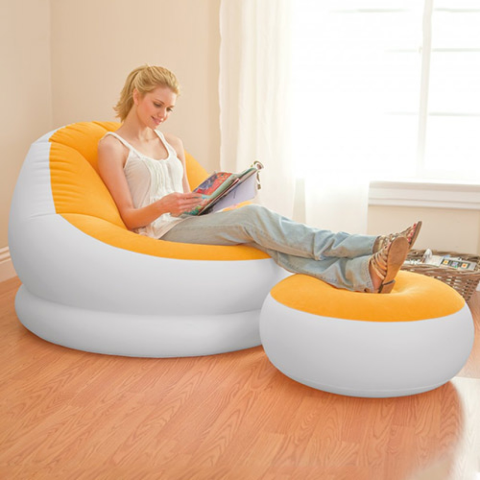 Felfújható fotel lábtartóval- stabil kialakítás- kézi vagy láb pumpával felfújható fotel- kényelmes szövet ülőfelület- bel- és kültérre is alkalmas- otthonra, nyaralásra, strandoláshoz kiválóFelfújható fotelünk maximális kényelmet biztosít neked a lakásban, a nyaralóban, vagy akár a strandon is. Helyezkedj el kényelmesen, tedd fel a lábad a lábtartóra és élvezd a pihenést.Mivel egy pumpa segítségével pár perc alatt felfújható, így ha nincs szüksége