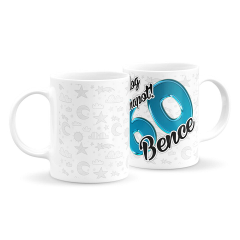 Férfi szülinapi bögre csillagos háttérrel (bármilyen névvel és számmal) bögrék, csészék árgrafikon