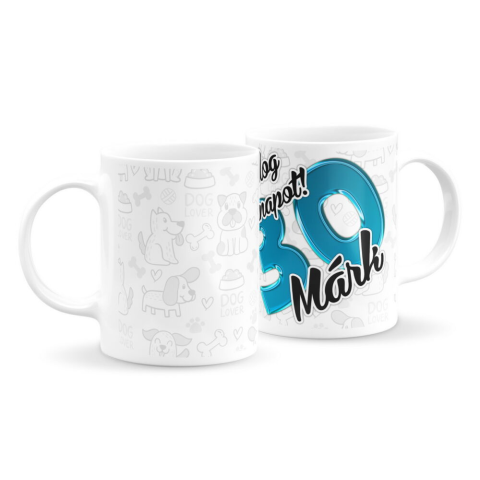 Férfi szülinapi bögre kutyás háttérrel (bármilyen névvel és számmal) bögrék, csészék árgrafikon