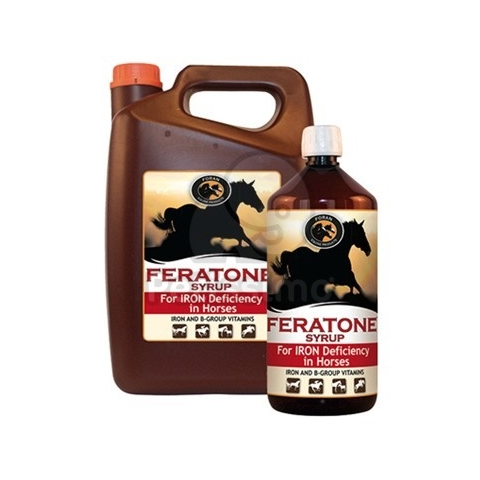 FELHASZNÁLÁSI TERÜLET: Az összes korú, és hasznosítású, vashiányos anémiában szenvedő lónak ajánlott, de különösképpen versenylovak részére. A Feratone szirupban nagy mennyiségű felhasználásra kész vas van, könnyen felszívódó formában. A vörösvérsejt-képzés, illetve a keringő vér mennyiségének elősegítésére a vas mellett B vitaminokat, és rezet is tartalmaz. Nagy teljesítmény, ill. fokozott munka, betegségből történő felépülés, vemhess