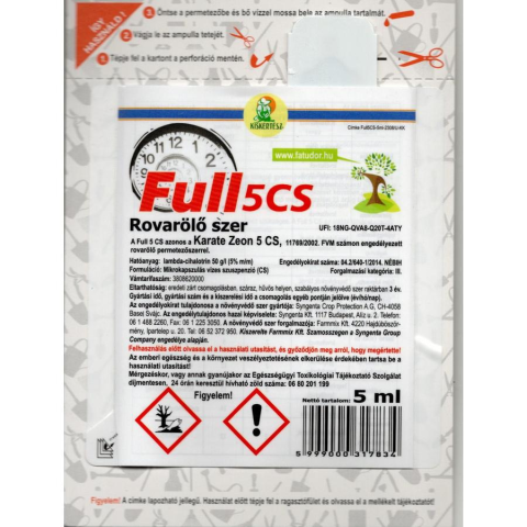A Full 5cs azonos a Karate Zeon 11769/2002. FVM számon engedélyezett rovarölő szerrel.