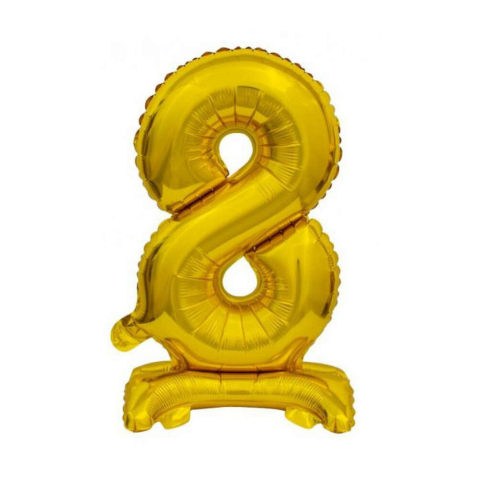 Arany mini 8-as szám fólia lufi talppal 38 cm Fólia léggömb, mely héliummal vagy levegővel tölthető. A lufi önzárószeleppel van ellátva, amely megakadályozza a gáz elszökését. Anyaga: fólia Méret: 38 cm A lufi tartó pálca + csésze külön megvásárolhat