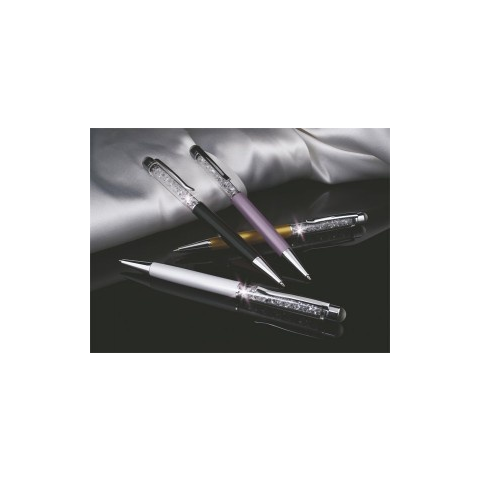 Elegáns kivitelű, kiváló minőségű, eredeti Swarovski® kristályokkal töltött golyóstoll. A tolltest fém, logózható, lézergravírozható. A toll végén található érintővel könnyedén kezelheti okoseszközeit. Elegáns ajándék magánszemélyek és cégek részére. Tolltest színe: arany. Kristály színe: fehér. Betét színe: kék. Vonalvastagság: 0,7mm. Csomagolás: elegáns díszdobozban.