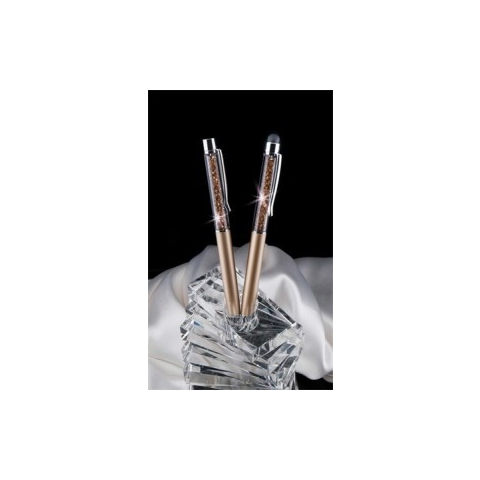 Elegáns kivitelű, kiváló minőségű, eredeti Swarovski® kristályokkal töltött golyóstoll. A tolltest fém, logózható, lézergravírozható. Elegáns ajándék magánszemélyek és cégek részére. Tolltest színe: arany. Kristály színe: topáz. Betét színe: kék. Vonalvastagság: 0,7mm. Csomagolás: elegáns díszdobozban.