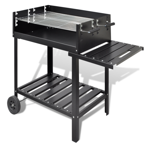 Ez a klasszikus faszén grill állvány magas minőségű felépítés, erős és tartós acél. Ez a grillező fa szenet használ, több funkciós mint a grillezés, sütés, dohányzás, piknikezés, kempingezés, kirándulások, stb.Tartalmaz 2 grillezőt, ennek a grillezőnek a teljes mérete 70 x 50 cm-es, viszonylag nagy helyet biztosít az étel elhelyezésére. Ez tartalmaz egy oldalsó polcot, ami praktikus a grill kiegészítők tárolására. A két kerekének köszönhetően, ezt nag