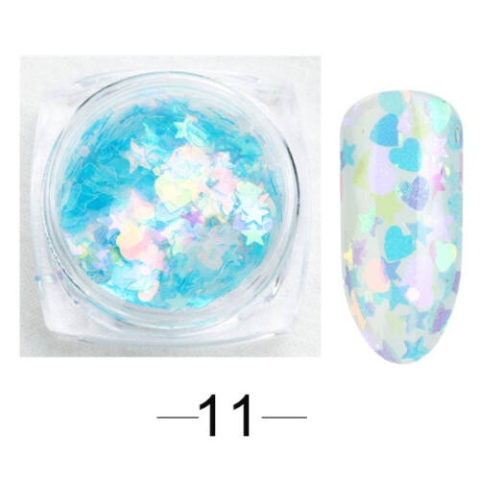 Hologrammos színjátszó díszítő elemek szív és csillag formákkal.