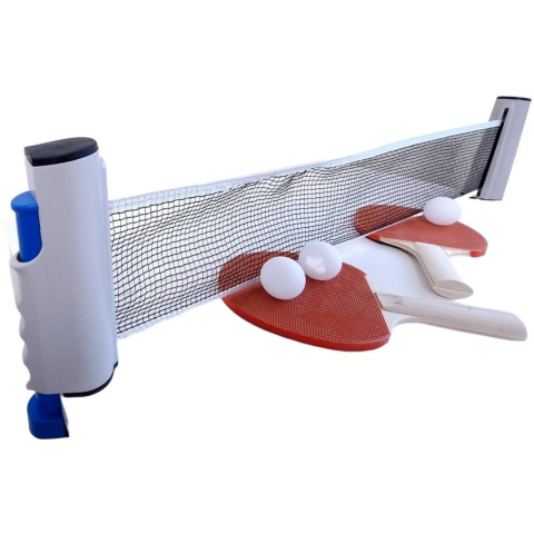 A készlet tartalma: két ütő asztaliteniszhez, 3 labda pingpongozáshoz, háló Méretek: nettó max.: 170cm x 14cm Az asztallaphoz illeszkedik a maximális vastagság: 5 cm ütők: 25,5cm x 14,5cm Csomag méretei: 28cm x 25,5cm x 6cm ASZTALI TENISZ PING PON