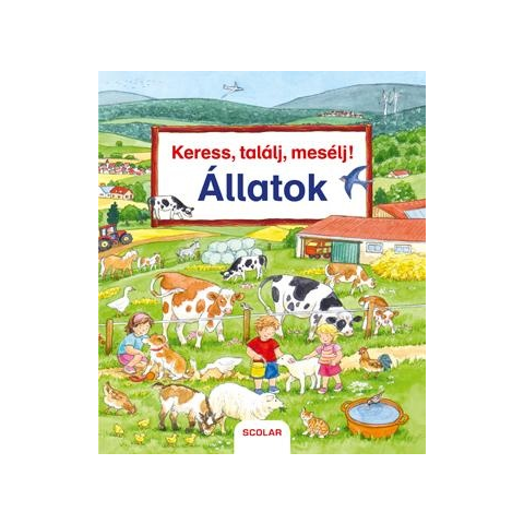 Ebben a Keress, találj, mesélj! mesekönyvben Lilla és Benedek nagy izgalommal fedezi fel a legkülönfélébb állatokat: a tanyán, a mezőn, a folyóparton, a hegyekben, sőt még a tengerparton is. Az állatkertben pedig a világ távoli vidékein élô állatokkal is