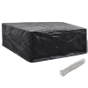 Ez a kiváló minőségű kerti bútorhuzat egész évben védi rattan garnitúráját a szennyeződéstől, széltől, esőtől és UV-fénytől. A kertben padok vagy asztalok védelmére is használható. A huzat strapabíró polietilénből készült, amely vízálló, UV-álló, szakadásálló így pedig alkalmas a mindennapi használatra. 10 alumínium fűzőlyukkal és rögzítőkötéllel rendelkezik, így jobban illeszkedik a garnitúrájához. Megjegyzés: Ez a termék nem 100%-ban ví