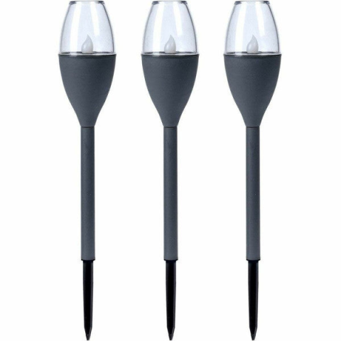 Ez a készlet három, napenergiával működő fáklyát tartalmaz, amelyek gyönyörű fényt biztosítanak, kiválóan alkalmasak a kert megvilágítására és a kellemes hangulat megteremtésére. Könnyen telepíthetőek és nem igényelnek karbantartást, így tökéletes kiegészítőként szolgálnak.