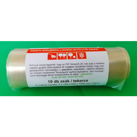 MOHU (FKF Zrt.) zöldhulladék gyűjtő zsák.1 tekercsen 10 db zsák található. A zsák ára a hulladék elszállítás díját is tartalmazza!