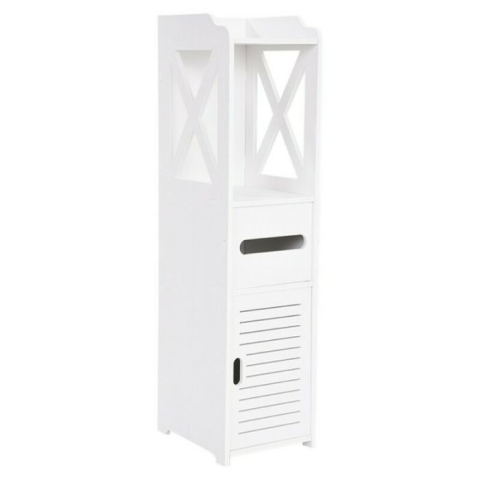 A keskeny fürdőszobai szekrény ideális megoldás kisebb helyiségek tárolási problémáinak megoldására. Három polccal és egy wc-papír tartóval rendelkezik, így helytakarékos és rendszerezett tárolási lehetőséget biztosít. Letisztult formavilágával és fehér színével könnyedén illeszkedik bármilyen fürdőszoba vagy akár más helyiség stílusához. Helytakarékos és praktikus kialakításEz a keskeny fürdőszobai szekrény kifejezetten kisebb helyiségekhez kész