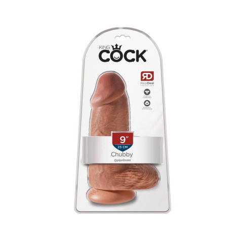1 kép King Cock 9 Chubby - tapadótalpas, herés dildó (23cm) - sötét natúr