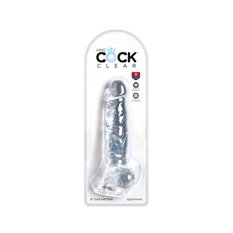 1 kép King Cock Clear 8 - tapadótalpas, herés dildó (20cm)