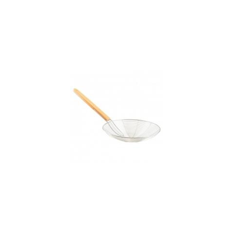 Kiszedő kanál, rozsdamentes acél fejjel és fa nyéllel rendelkezik. Teljes hossza 55,5 cm, a fej átmérője 27 cm, a nyél pedig 30 cm. A kosár mélysége 6,5 cm. Ideális eszköz a konyhában, a különféle sültek, tepertő kiszedéséhez.
