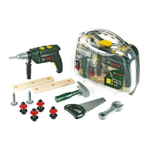 Klein Bosch Mini barkácsszett fúrógéppel Végezz karbantartási munkákat! A Klein Bosch Mini nagy barkácsszett segít a karbantattási munkák elvégzésében A Klein Bosch Mini barkácsszett fúrógépet, kalapácsot, fűrészt, francia kulcsot és összecsavarozható