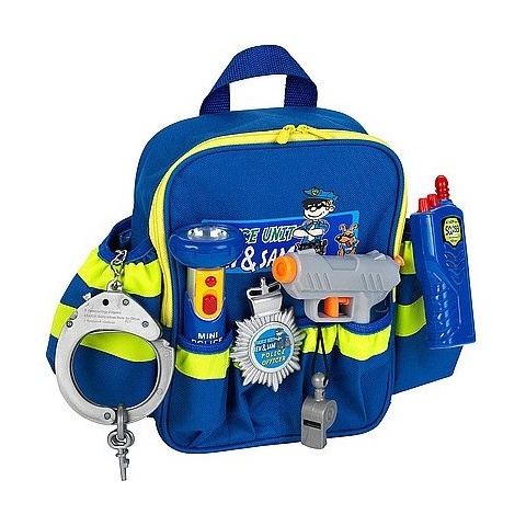 Klein Rendőrségi hátizsák Fogd el a bűnözőket! A Klein Rendőrségi hátizsák állítható pántokkal (max. 44,5 cm hosszú) a játék rendőrségi hátizsák külső zsebei elasztikus anyaggal, a külső szövet fényvisszaverő elemekkel van ellátva, 100% poliészter kéz