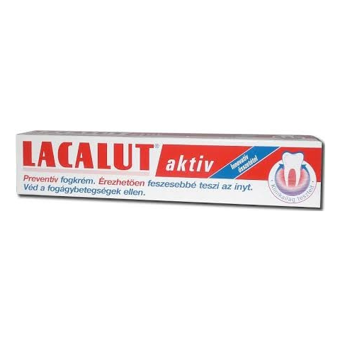 LACALUT aktiv fogkrém a fogínyvérzés és a fogágybetegség megelőzésére. A speciális LACALUT hatóanyag formula azonnal, érezhetően feszesíti és erősíti a fogínyt. Magas fluoridtartalma véd a fogszuvasodás ellen. Megelőzi a fogínygyulladást. 12 órás hoss