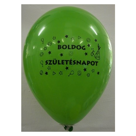 Léggömb, 26 cm, két oldalon nyomott "Boldog születésnapot", vegyes szín