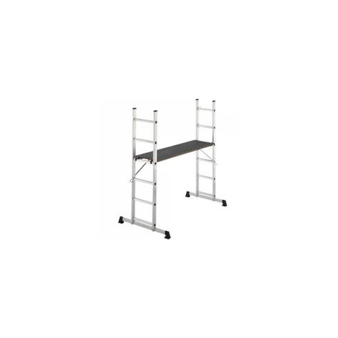 A létraállvány alu létra 2 x 6 fokos (10611) csúszásmentes, műanyag stabilizátor talpakkal ellátott. Korrózióálló alumíniumból készült. Magassága 2,8 méter. Használhatja különböző munkákra a ház körül.A kép csak illusztráció!
