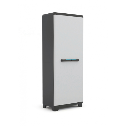 Linus magas műanyag szekrény - kedvező áron kapható műanyag szekrény, mely a lakás több helyiségében is jól használható, de fedett erkélyekre, teraszokra is remek választás. Lábainak magassága hozzáigazítható a talaj egyenetlenségeihez. 3 darab polca szintén állítható, így praktikusan kihasználhatjuk a rendelkezésre álló helyet. Műanyag felületei könnyen tisztíthatók. Összeszerelése nem igényel szakértelmet. Polconként 15 kilogramos terhelést bír el